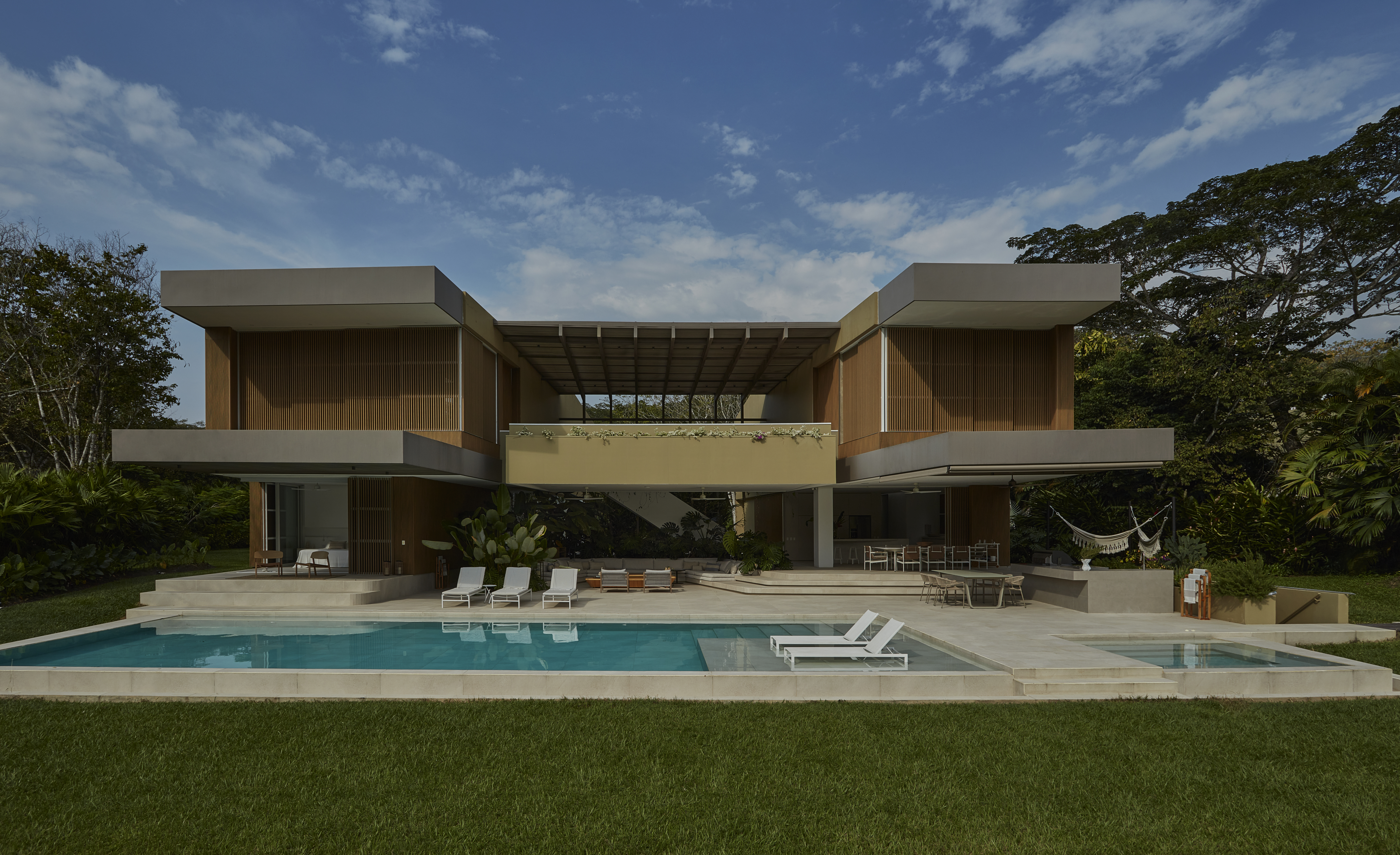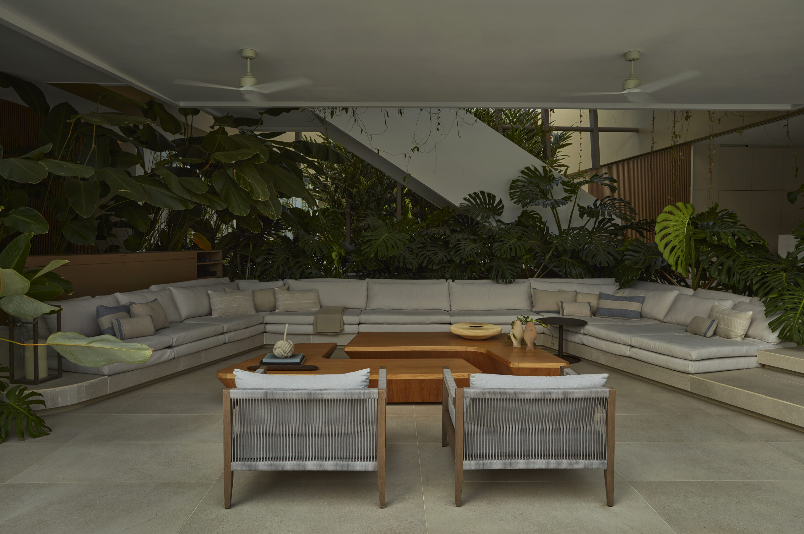 La búsqueda y manipulación del vacío a través del espacio construido fue la interrogante principal para el diseño de RL17. Entendemos la forma como un elemento que no sigue la función sino como una oportunidad para convertir el espacio habitado en un lugar de estímulos sensoriales. La volumetría quiebra la ortogonalidad y al mismo tiempo produce diversos ritmos a través de líneas curvas. Su interiorismo y ambientación tienen un estilo definido de elegancia y sobriedad. La contraposición de aperturas del proyecto son claves; de un entrada pesada y monolítica a una fachada posterior llena de voladizos y sin columnas que da la impresión de que la casa estuviera flotando.